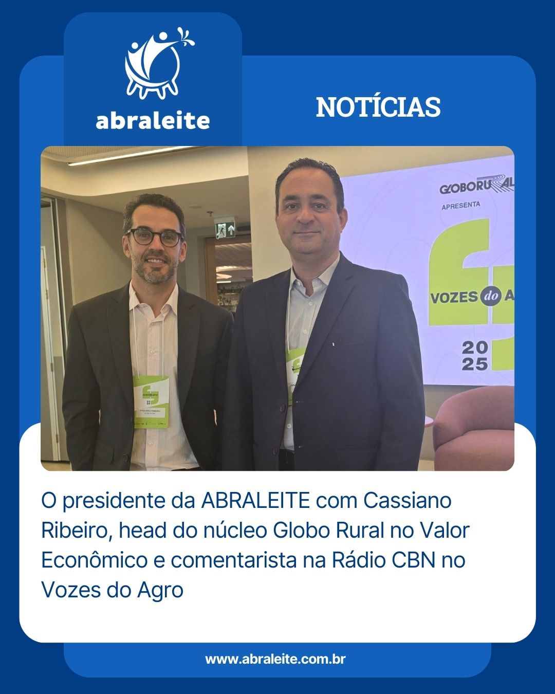 Estar presente no evento Vozes do Agro é fundamental para o setor do leite, que precisa ser cada vez mais valorizado dentro do agronegócio brasileiro. Eventos como este fortalecem a imagem do nosso setor e abrem caminhos para mostrarmos a importância da produção leiteira para o país e para o mundo.” – Geraldo Borges, presidente da ABRALEITE.