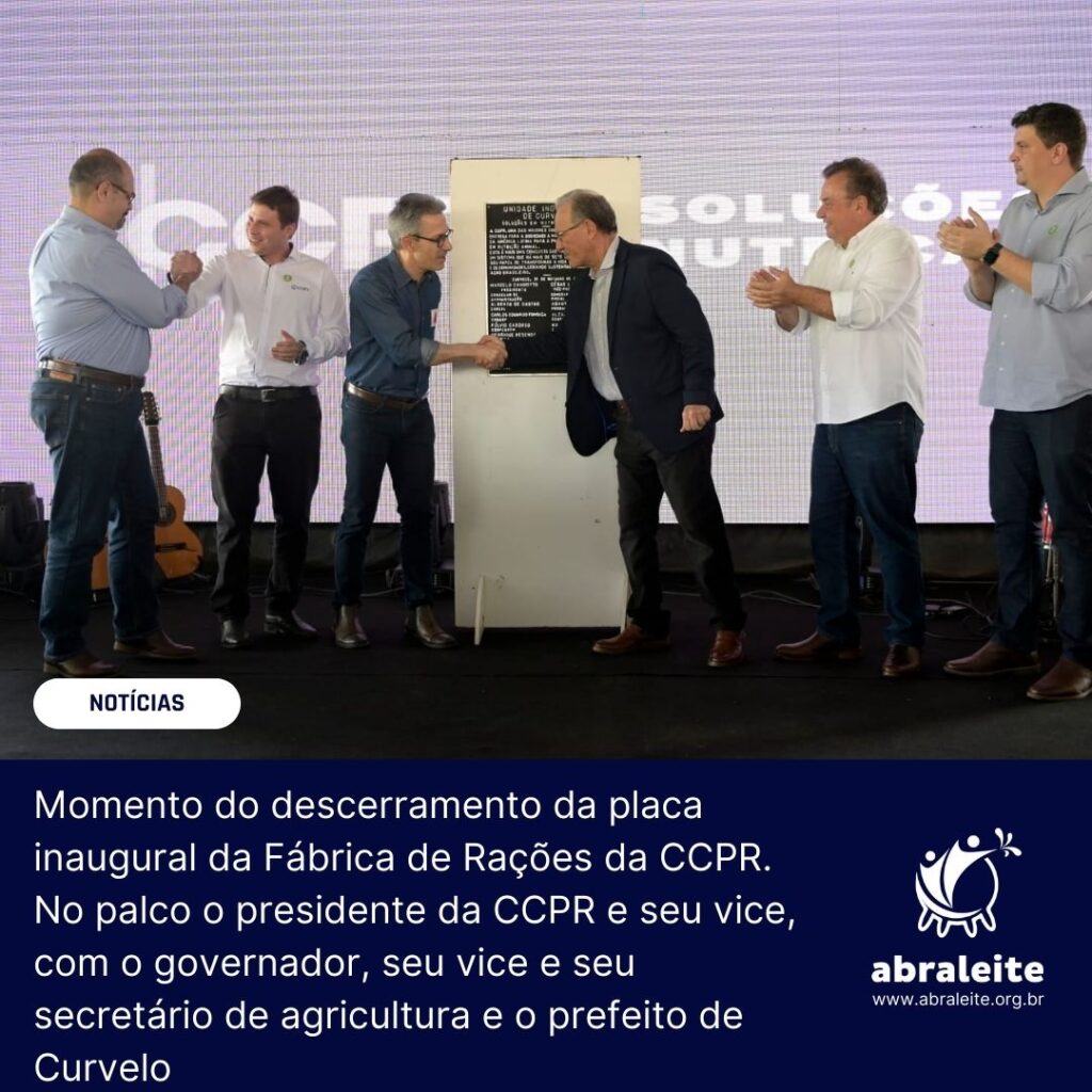 Nesta quinta-feira, 31 de outubro, a CCPR (Cooperativa Central dos Produtores Rurais) inaugurou a primeira fase da sua nova Unidade Industrial em São José da Lagoa, Curvelo/MG. A cerimônia contou com a presença de importantes lideranças do agronegócio, entre elas Geraldo Borges, presidente da ABRALEITE, que esteve presente a convite da CCPR, destacando a relevância da iniciativa para o setor lácteo. O novo complexo, com investimento de R$ 240 milhões, é um marco na produção de ração para ruminantes, com capacidade inicial de 540 mil toneladas por ano e previsão de expansão para até 1,2 milhão de toneladas anuais.