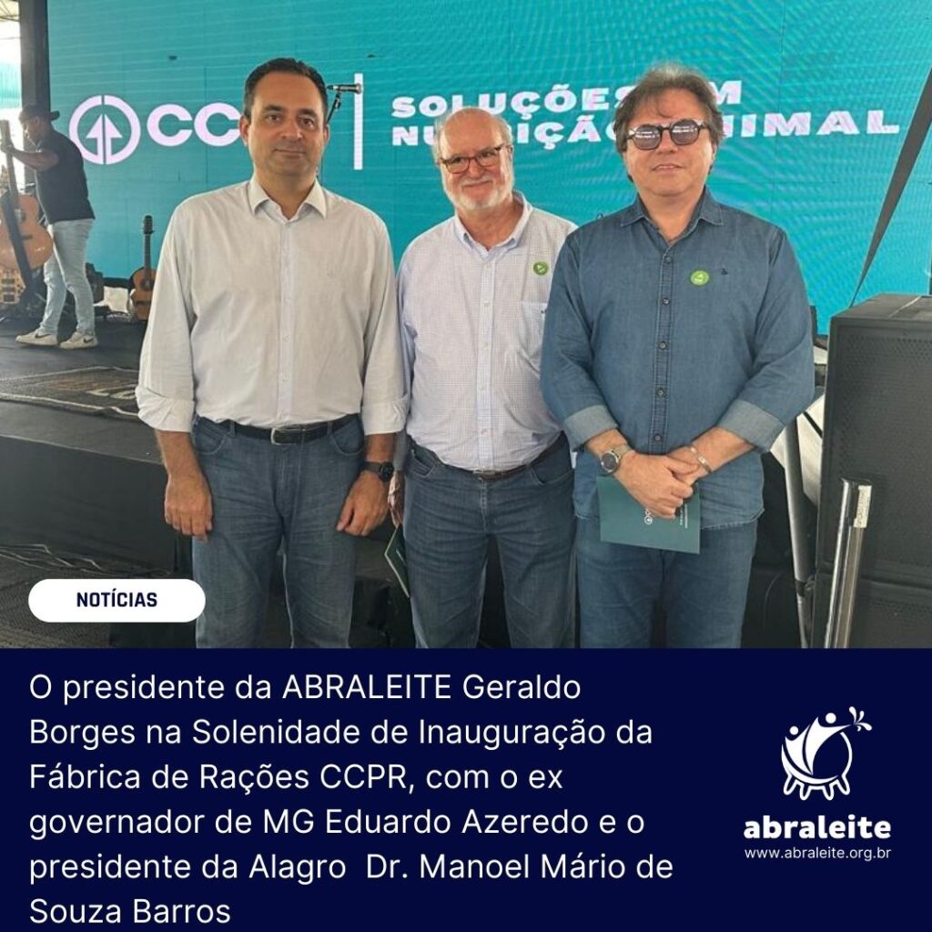 O presidente da ABRALEITE, Geraldo Borges, parabenizou a CCPR pelo empreendimento de muita importância para o setor. “Essa planta representa não apenas um avanço na produção de nutrição animal, mas também um ganho significativo para toda a cadeia do agronegócio. A CCPR mostra seu comprometimento com a inovação e o desenvolvimento regional, promovendo benefícios socioeconômicos para Curvelo e toda a região, Minas e o Brasil”, afirmou Geraldo Borges, reforçando a importância do investimento na segurança alimentar e na competitividade dos produtores rurais brasileiros.