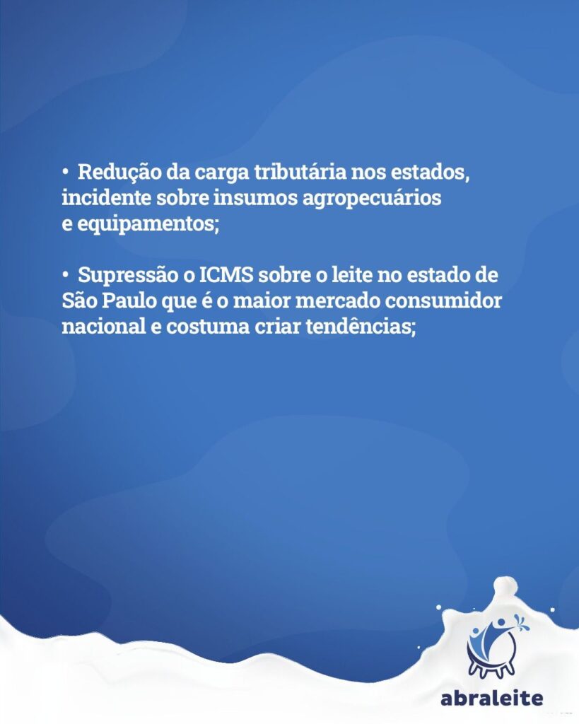 A ABRALEITE também atua com firmeza para reduzir a carga tributária e garantir mais competitividade ao produtor de leite. Veja algumas conquistas nesse campo no carrossel ao lado.
