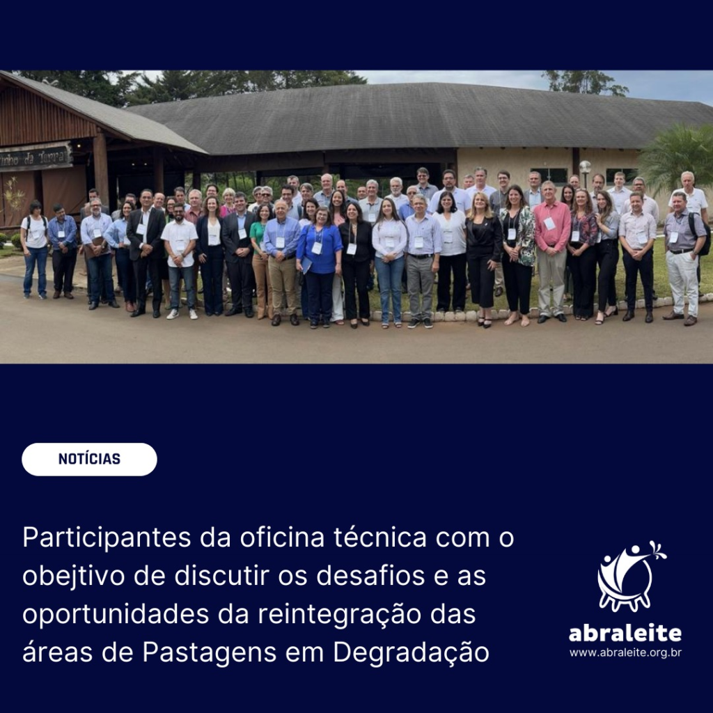 No dia 04 de outubro, o presidente da ABRALEITE, a convite da Embrapa, participou, da primeira oficina técnica organizada pela Embrapa e Banco Mundial para discutir as políticas públicas para otimização do uso sustentável de áreas de pastagens em degradação. O evento aconteceu na sede da Embrapa e contou com a visita da presidente Silvia Massruha.